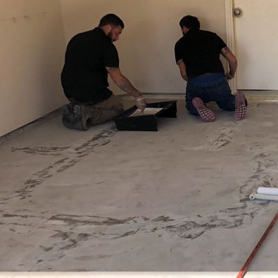 Step 1: Prep floor by mechanically grinding floor, crack chasing and filling.